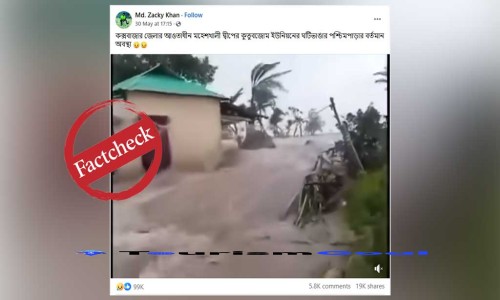 Md. Zacky Khan নামের ফেসবুক পেজ থেকে গত ৩০ মে বিকাল ৫টা ১৭ মিনিটে পোস্ট করা ভিডিওটি সবচেয়ে বেশি ছড়িয়েছে। এর ক্যাপশনে লেখা, ‘কক্সবাজার জেলার আওতাধীন মহেশখালী দ্বীপের কুতুবজোম ইউনিয়নের ঘটিভাঙার পশ্চিমপাড়ার বর্তমান অবস্থা।’ (বানান অপরিবর্তিত)