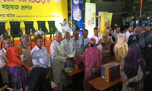 আলোচনা সভাশেষে প্রধান অতিথিসহ অতিথিরা দর্জি প্রশিক্ষণ নেওয়া ৩০ নারীর মাঝে সেলাই মেশিন ও চেক বিতরণ করেন।